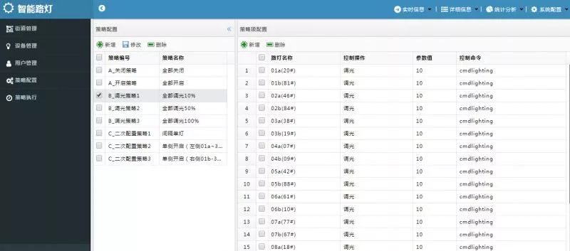 在系统配置功能界面可实现单灯控制功能、批量控制功能及定时控制功能。同时配合产品目录区,可实现路灯GIS位置查看,点选地图设备,可快速查看设备状态。