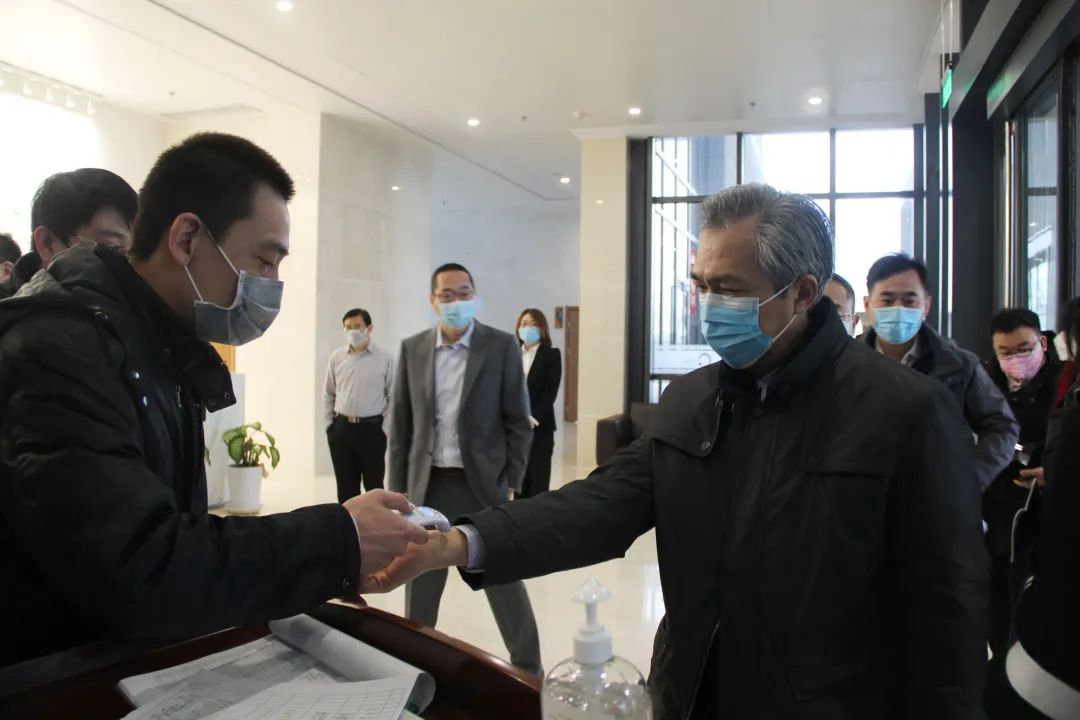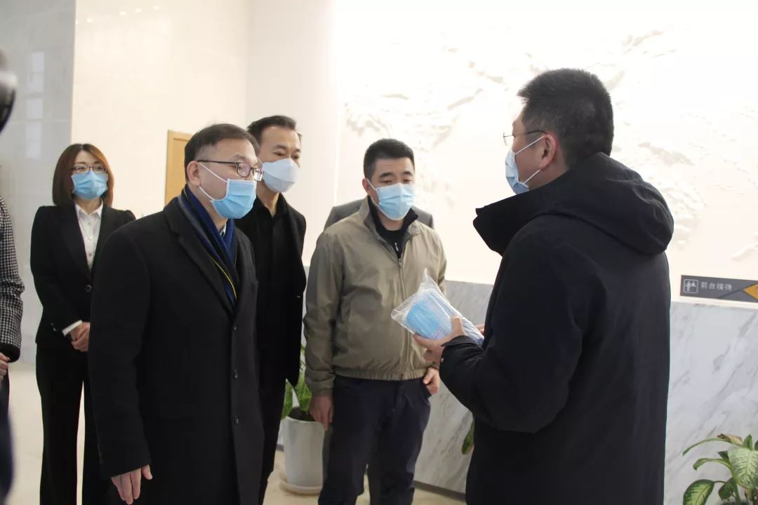 2020年2月20日,天津滨海高新技术产业开发区党委书记、管委会主任单泽峰(时任),天津市财政局副局长梁宣健,高新区税务局党委书记、局长田景强等一行率队到天津3003.com新葡的京集团物联科技股份有限公司进行调研服务,并送来防疫物资;3003.com新葡的京集团物联董事长刘柏呈,执行总裁庞文魁,总裁王涛,副总裁杨鸥、米玉淼、赵梅,汇峰设计院副院长丰美丽陪同调研,并详细介绍企业疫情防控工作开展情况。
