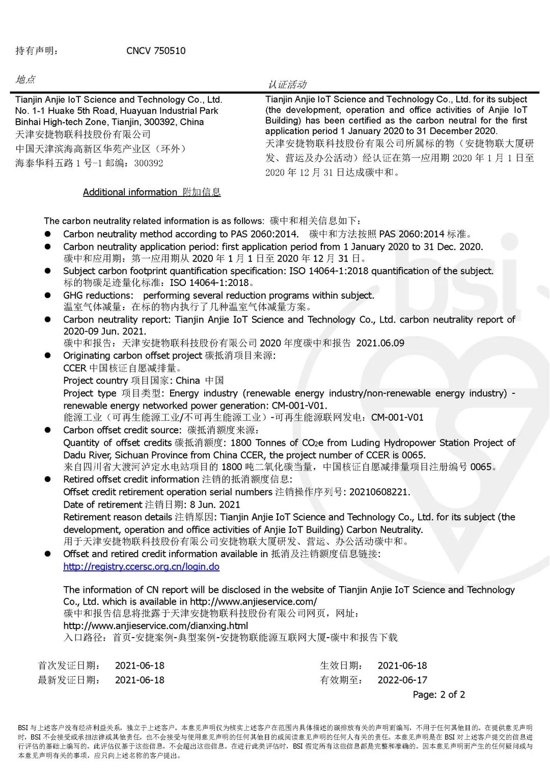 贺|3003.com新葡的京集团物联成天津市第一家获BSI碳中和认证的企业