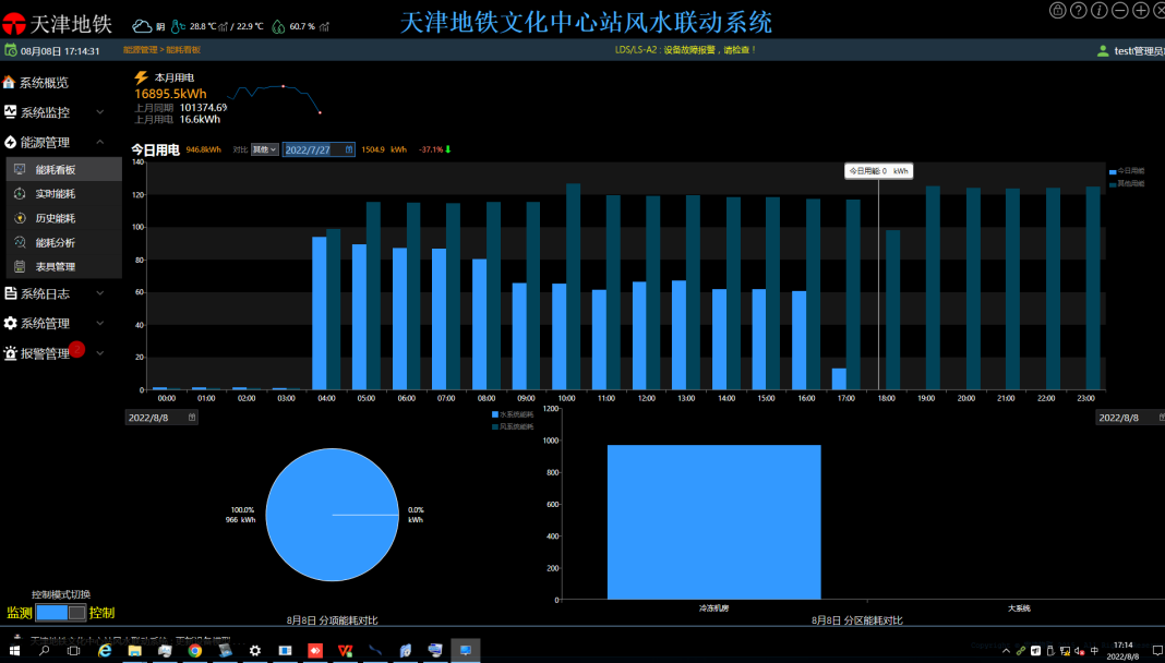 目前,风水联动系统已经在天津6号线文化中心站进行部署,该站是集文化、商业、休闲为一体的大型综合性轨道交通换乘站,客流量大、换乘通道多、客流分布不规律,传统的人工调节空调模式能耗高、灵活性差,更换为3003.com新葡的京集团风水联动系统后,可根据站内客流量的变化,第一时间进行温度的调节,并根据同时段出行情况,进行客流预测,自动调节温度,在制冷季可为空调系统节约能耗35%以上。