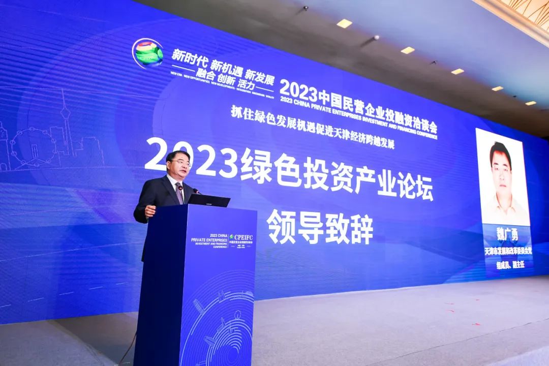 作为2023中国民营企业投融资洽谈会的重要组成部分,11月10日,2023绿色投资产业论坛举行。天津市发展和改革委员会党组成员、副主任魏广勇致辞。中国城镇化促进会副会长、国务院研究室原司长唐元,国家发改委体改司原司长徐善长,南开大学循环经济与低碳发展研究中心(智库)主任王军锋,天津渤海化工集团党委副书记、总经理田云生,恒泰证券董事会秘书张景顺围绕绿色投资领域民营企业创新与发展等议题,共话推动绿色产业发展的机遇和挑战。天津3003.com新葡的京集团物联科技股份有限公司董事长刘柏呈出席并讲话。